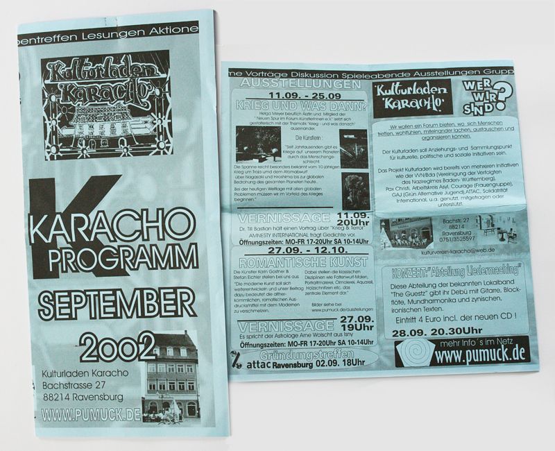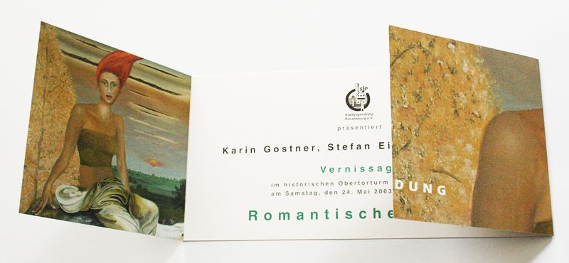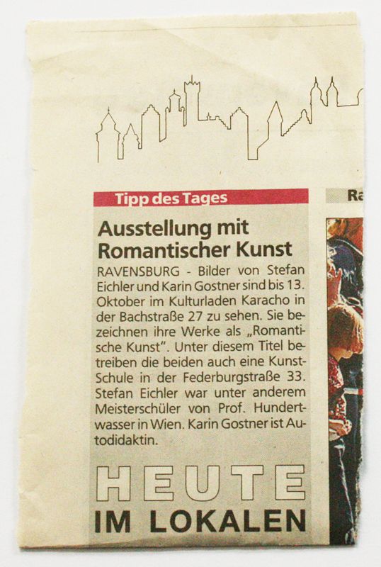 Unter dem Namen „Romantische Kunst“ hatte ich seit 2002 bereits drei Gemeinschaftsausstellungen zusammen mit Stefan Eichler. Ich stellte mit ihm im Kulturladen, im historischen Obertorturm in Ravensburg und im Rathaus in Grünkraut aus.